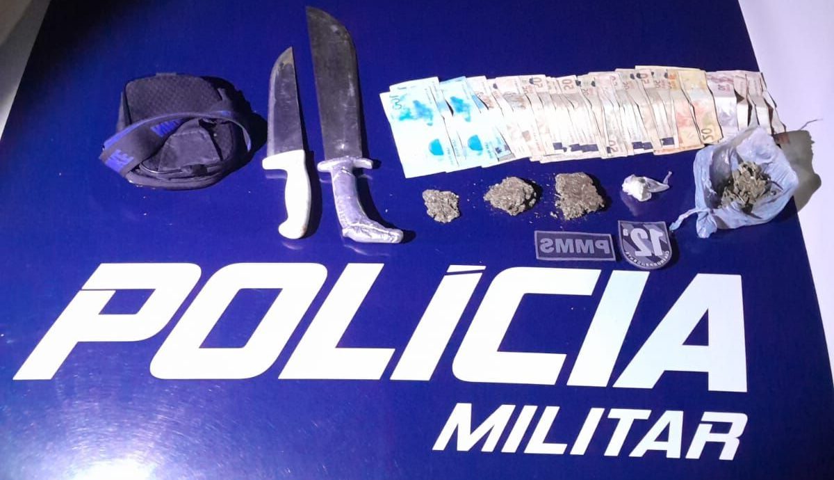 O autor da agressão ainda estava na casa do casal quando os policiais chegaram. Durante a revista pessoal, encontraram uma porção de pasta base de cocaína em sua cintura. Além disso, na geladeira, havia uma quantidade de maconha, e no quarto, R$ 1.850,00 em dinheiro.