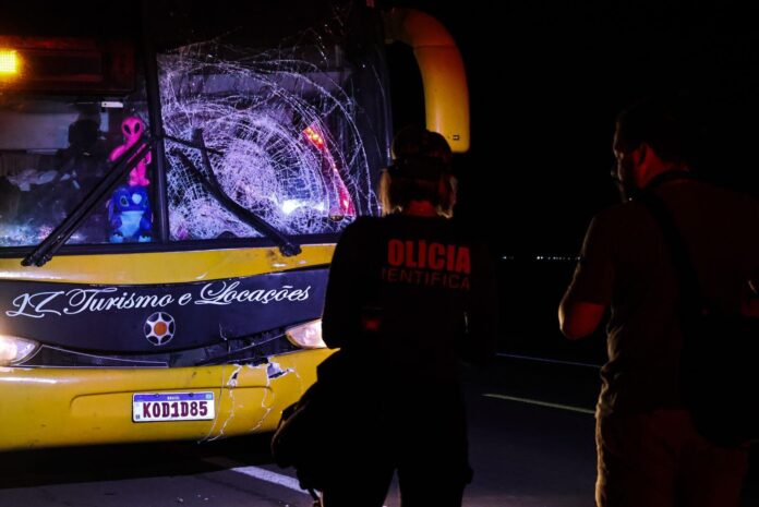 O corpo dele passou embaixo do ônibus e, posteriormente, uma carreta passou por cima dele. O homem morreu no local. A PRF (Polícia Rodoviária Federal) e Polícia Civil foram acionadas.