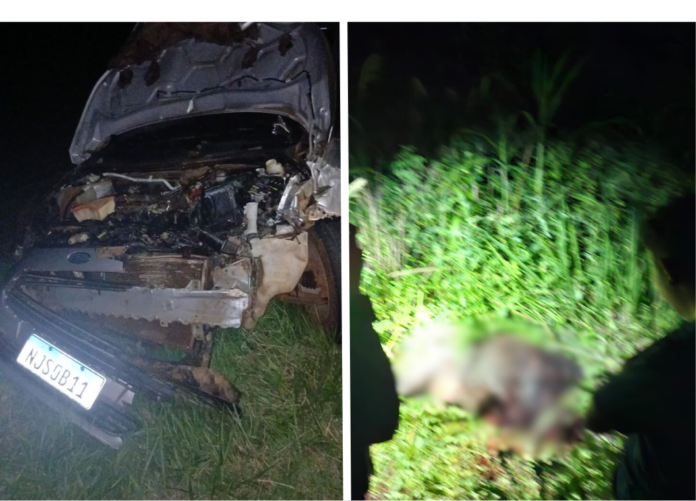 Uma família de 3 pessoas saíram ilesa de um acidente com anta na noite desse sábado entre Rio Negro e São Gabriel do Oeste. O condutor teria avistado o animal antes da batida, porém não consegui desviar.
