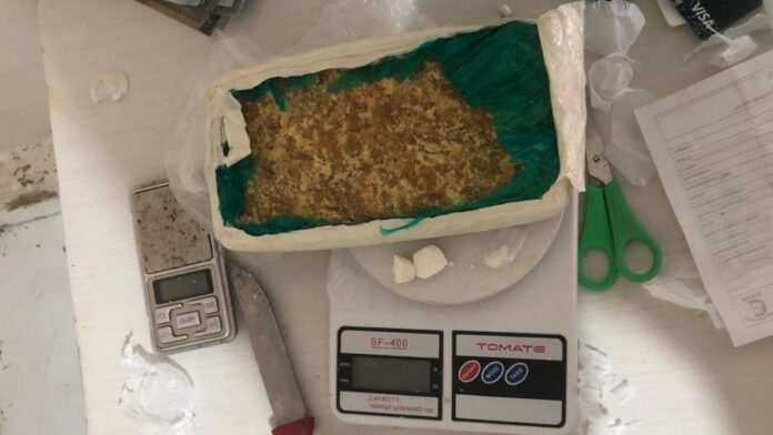 No local, onde funcionava o açougue, foram encontradas drogas, como pasta base de cocaína, faca, tesoura, sacolas devidamente cortadas para embalagem da droga, caixas com comprovantes de pagamentos em valores de R$ 18 a R$ 40, além de três balanças de precisão para a pesagem dos entorpecentes.