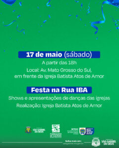 “É uma honra realizar uma festa tão significativa para São Gabriel do Oeste, com espaço dedicado aos artistas locais, apresentações culturais e atrações regionais e nacionais. Cada detalhe foi preparado com muito carinho e comprometimento. Convidamos toda a comunidade a participar, celebrar e valorizar essa trajetória de conquistas que pertence a todos os gabrielenses”, afirmou o secretário.