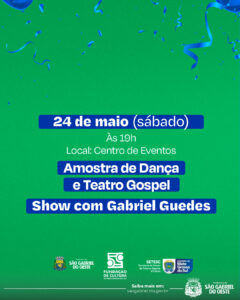• 24 de maio (sábado) – Amostra de Dança, Teatro Gospel e Show