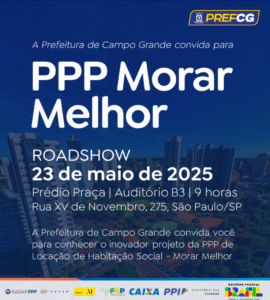 A Prefeitura de Campo Grande realiza, no próximo dia 23 de maio, em São Paulo, o Roadshow da PPP Morar Melhor. O projeto pioneiro de Parceria Público Privada com foco em Locação Social visa ampliar o acesso à moradia digna e de qualidade na capital sul-mato-grossense.