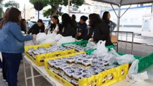 São 3 mil alianças escondidas no recheio do bolo e diz a tradição que quem encontrar terá boa sorte para se casar. E assim, dezenas de pessoas acordam cedo neste dia 13 para buscar seu bolo.