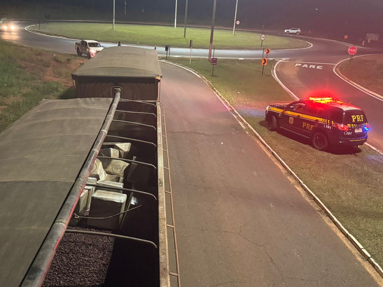 A equipe de policiais rodoviários federais deu ordem de parada, no km 95 da BR-158, ao veículo M.benz/Actros 2651s6x4, conduzido por um homem. Questionado pelos policiais, o condutor disse que estava levando uma carga de minério de ferro. Porém, ao ser fiscalizada, os agentes localizaram diversos fardos de maconha por cima da carga.