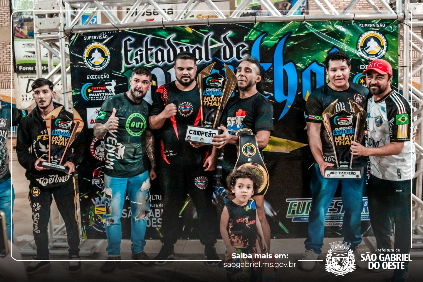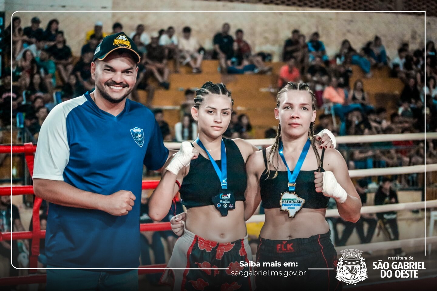 Atletas de São Gabriel no pódio A delegação de São Gabriel do Oeste deu um show de desempenho e garantiu três cinturões estaduais: ???? Rosemir Machado (67 kg – Nova Aliança) ???? Walker Wilson (71 kg – Gladiadores/Power) com nocaute no 1º round ???? Cleyton Gutierrez (peso pesado) também com nocaute no 1º round Destaques também para: ???? Daniel Wilker (71 kg – Pro-Am) com nocaute ???? Lucas Boggi (63,5 kg – Pro-Am) com dois nocautes em duas lutas ???? Yasmin Ulsenheimer – ouro e a melhor luta feminina da noite ???? Jenifer Loraine – medalha de prata O evento também teve forte viés social: a entrada foi 1kg de alimento, arrecadado e organizado pela Secretaria de Assistência Social, com resultado considerado excelente pelo secretário Jeferson Masiaga. ???? Equipes campeãs do estadual ???? Campeã Geral: FFT/RVT – Dourados/Selvíria ???? Vice-campeãs: Power Fighters, Gladiadores e Bravo Thai – São Gabriel/Chapadão do Sul ???? 3º Lugar: Fênix Team – Dourados ???? Resultados principais: Cinturões e destaques individuais: Semi-pró 71 kg: ???? Walker Wilson | ???? Patrick Barros Semi-pró 67 kg: ???? Rosemir Machado | ???? Vitor Elieber Super Pesado 120 kg: ???? Cleyton Gutierrez | ???? Daniel dos Santos Semi-pró 71 kg Master: ???? Clodoaldo Gomes | ???? Ricardo Aparecido Feminino 54 kg: ???? Luana Mendes / Alessandra Repele (empate) Semi-pró 75 kg: ???? Daniel Wilker | ???? Alison Júnior Até 60 kg: ???? David Gutierrez | ???? Pedro Henrique Avançado 15–17 anos – 54 kg: ???? Diego Ávila | ???? Kaio Gabriel Feminino Semi-pró 75 kg: empate – Stefany Gomes e Ana Veruska.