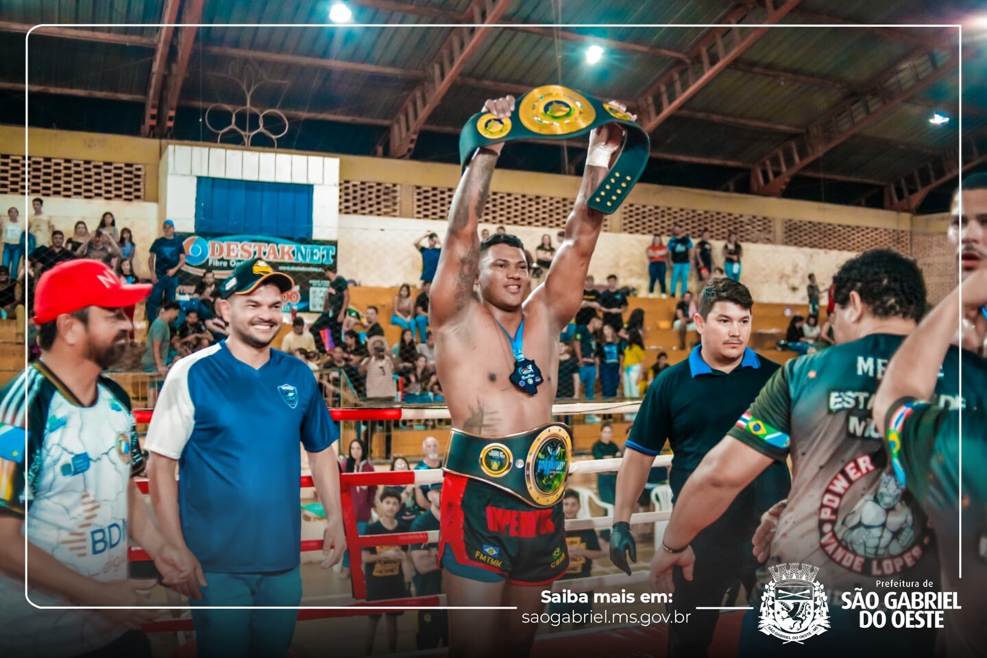 Após seis anos, São Gabriel do Oeste voltou a ser palco de um grande evento esportivo estadual. No último final de semana, a cidade sediou o Campeonato Estadual de Muaythai Tradicional MS, promovido pela Federação Estadual de Muaythai, com apoio total da Prefeitura Municipal, por meio da Secretaria de Cultura, Desporto e Turismo, Secretaria de Assistência Social, Secretaria de Saúde e Assessoria de Comunicação.