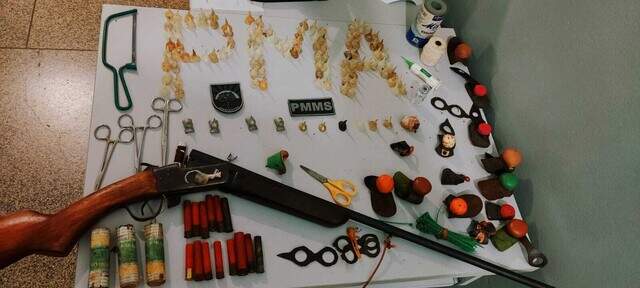 Um dos homens presentes se apresentou como dono da chácara e responsável pela organização do evento. Com a autorização dele, os policiais fizeram buscas no imóvel e encontraram uma espingarda cartucheira calibre 36, além de 18 cartuchos intactos, espoletas, pólvora e outros cartuchos deflagrados.