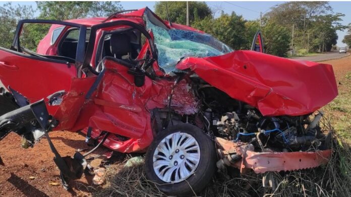Uma mulher de 43 anos morreu na noite de domingo (17) em um acidente entre um carro e um ônibus de viagem em Rio Brilhante (MS). A vítima, Sandra dos Santos Alves, era passageira do carro. O motorista foi preso em flagrante.