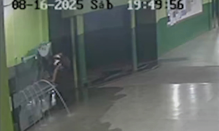 Segundo a polícia, o autor do crime é Rodrigo Meira Pinto Aquino, de 22 anos, conhecido pelo apelido de “Barba”. As imagens captadas por câmeras de segurança mostram ele dentro da escola, no sábado (16). Enquanto pega as torneiras, a água jorra pelo pátio da escola.