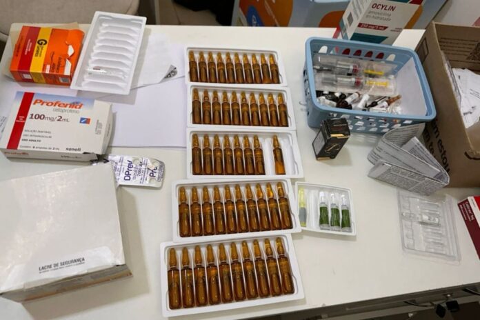 Durante a operação, os policiais encontraram, no veículo de um dos investigados, diversos medicamentos e frascos de soro fisiológico armazenados de forma inadequada, sem controle de temperatura ou condições técnicas exigidas.