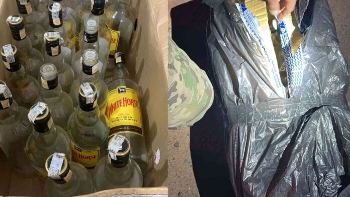 Na ocasião, as garrafas estavam escondidas entre uma carga diversificada. Os itens teriam sido colocados de forma estratégica na parte da frente do baú do veículo para dificultar que fossem localizados.