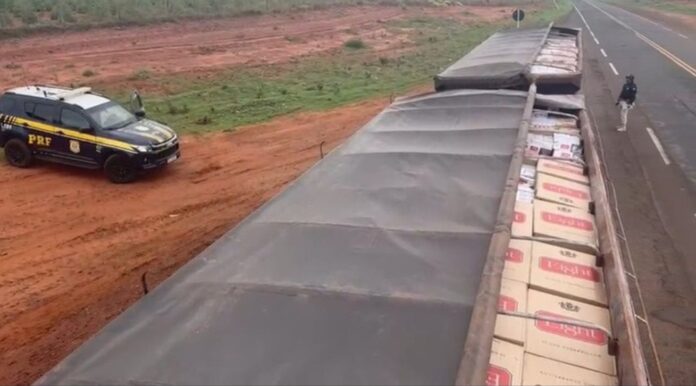 De acordo com a polícia,a mercadoria era transportada em um caminhão abordado pelos policiais rodoviários federais. Durante a fiscalização, o condutor disse que transportava minério de ferro e apresentou a nota fiscal da carga, mas ao retirarem parte da lona que cobria o reboque, os policiais encontraram várias caixas de cigarros.