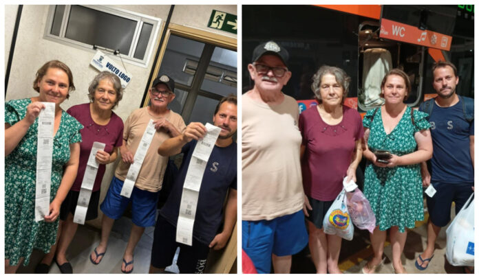 A família preferiu permanecer na estadia oferecida via rede social e a partir daí, a primeira medida foi verificar junto às empresas de ônibus, a possibilidade de obter passagens gratuitas para o casal de idosos, já preconizadas pela legislação nacional. Porém, a cota das empresas destinadas ao benefício, já estava fechada pelos próximos dois meses.