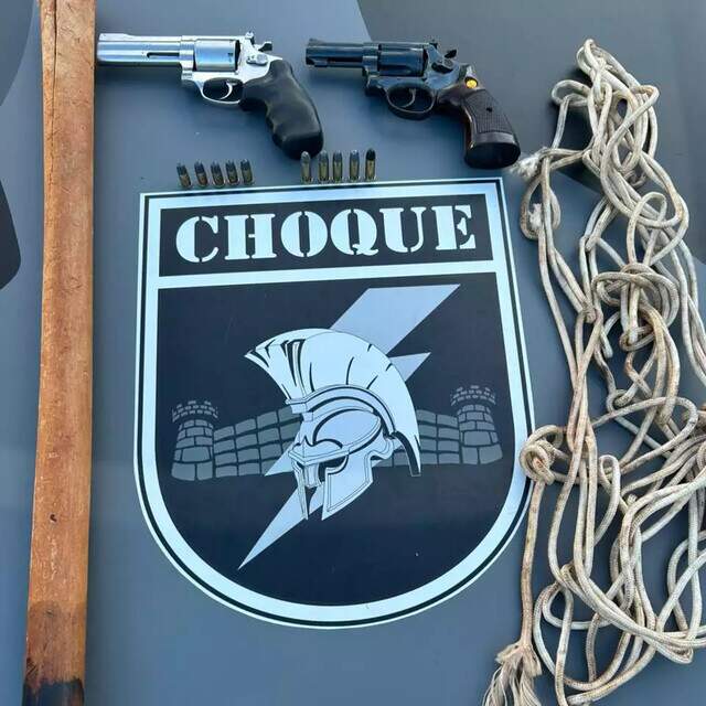 Durante as buscas, os policiais apreenderam a corda e o porrete usados nas agressões, além de dois revólveres calibre .38, cada um com cinco munições intactas, totalizando dez munições. Uma das armas foi encontrada sob uma cômoda dentro da residência. A outra estava escondida na vegetação, próxima à caminhonete Amarok, coberta por um pano. Um dos envolvidos assumiu a posse de um dos revólveres.