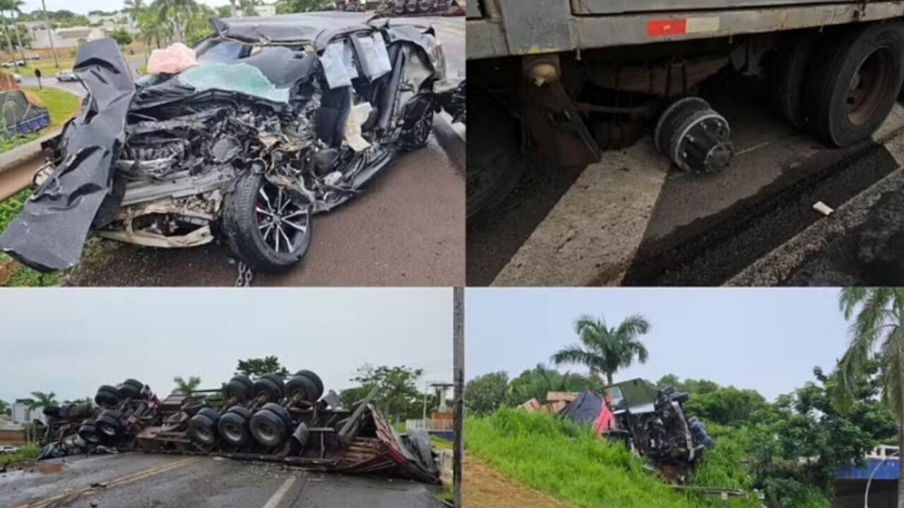 Conforme informações preliminares, as rodas do caminhão Ford, que transportava blocos, teriam se soltado e caído sobre a pista. O caminhão Volvo, carregado com azulejos, colidiu com as rodas e, em seguida, bateu frontalmente contra o carro da família.