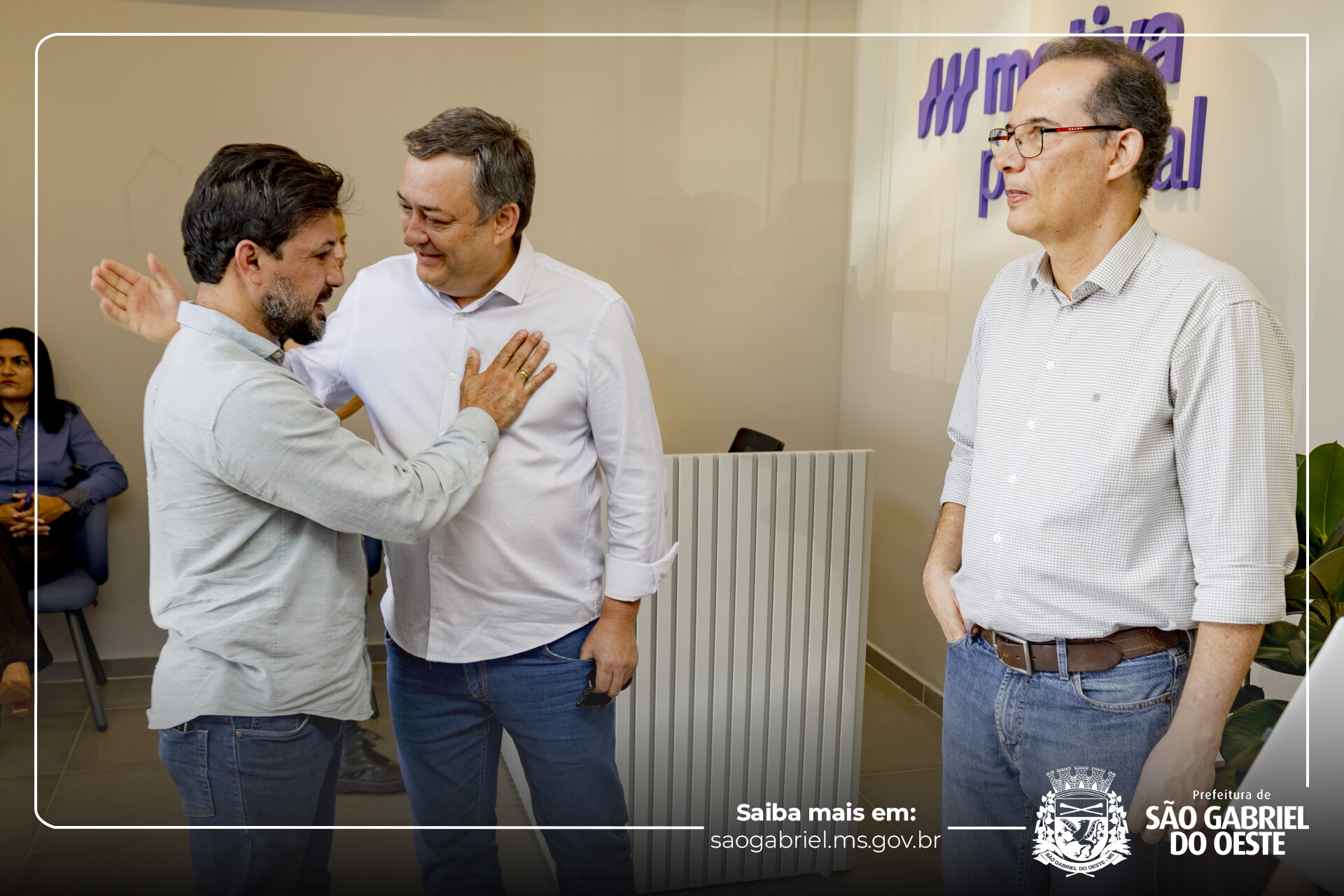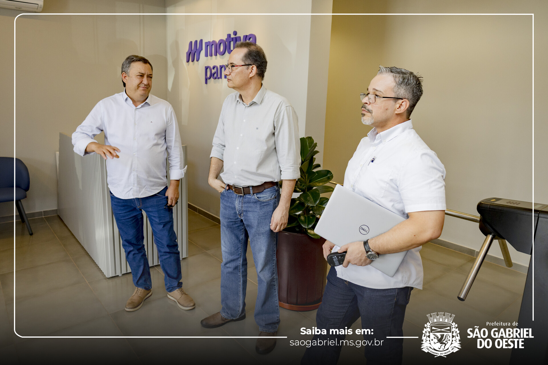 Na tarde de ontem, o prefeito de São Gabriel do Oeste, Leocir Montanha, liderou uma comitiva em visita à Motiva, concessionária responsável pela BR-163. A agenda contou com a presença do deputado federal Geraldo Resende, do deputado estadual Junior Mochi, além dos vereadores Valdecir Malacarne, Geraldo Rolim e Rose Procópio.