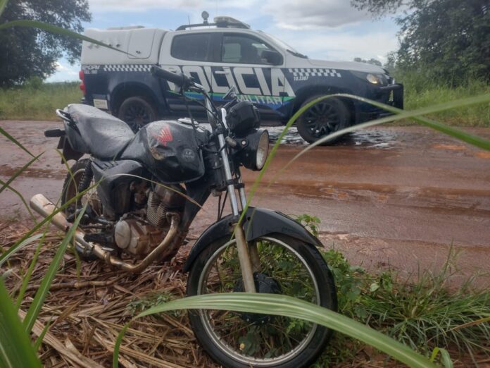 Motocicleta adulterada é encontrada abandonada e apreendida pela PM em São Gabriel do Oeste