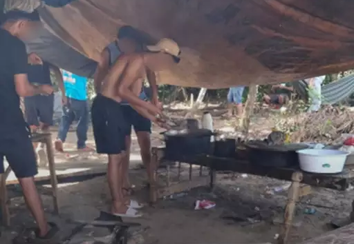 No local, os trabalhadores viviam em condições extremamente precárias, alojados em barracos improvisados com galhos e lona.