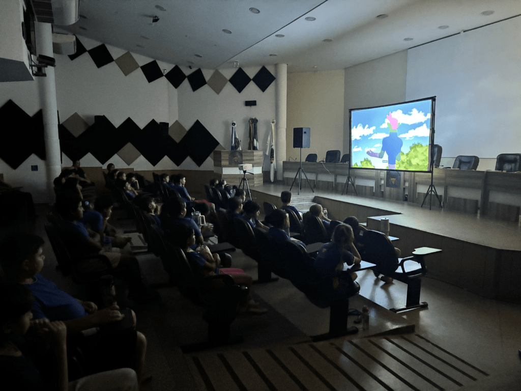 Durante a sessão, foi exibido o filme Curupira – O Herói da Mata, uma animação brasileira que retrata a figura do Curupira, personagem do folclore indígena, conhecido como guardião da floresta. A obra destaca a importância da preservação ambiental, especialmente no contexto do Pantanal e apresenta valores ligados à proteção da natureza e dos animais.
