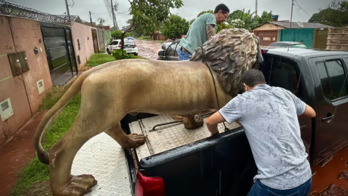 Denúncia anônima realizada na manhã desta segunda-feira (27) ajudou a Derf (Delegacia Especializada de Roubos e Furtos) a localizar a estátua de um leão, item de decoração da fachada de uma lanchonete de Campo Grande (MS), furtada na madrugada de sexta-feira (24).