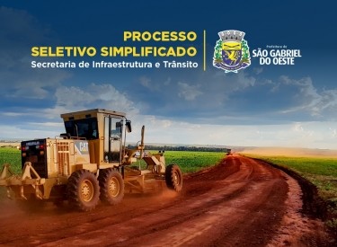 A Prefeitura de São Gabriel do Oeste, por meio da Secretaria de Infraestrutura e Trânsito, torna público o Processo Seletivo Simplificado 01/2021 para contratação de Auxiliar de Serviços de Infraestrutura, Auxiliar de Serviços Gerais, Borracheiro, Mecânico Especializado, Motorista de Veículos Pesados e Operador de Maquinas e Equipamentos Pesados.