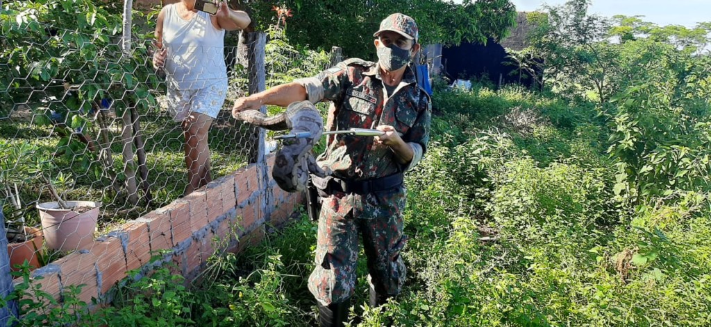 Os Policiais Militares Ambientais foram ao local e verificaram tratar-se de uma serpente da espécie Boa constrictor (jiboia) com aproximadamente dois metros de comprimento, que se apresentava com o estômago cheio, possivelmente devido a alimentação do gato que o solicitante relatou. A jiboia não apresentava ferimento e foi solta no seu habitat, em uma reserva distante da área urbana.