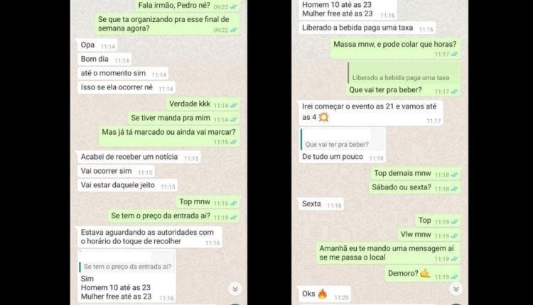 Em contato com um dos contatos adquiridos através das redes sociais, a conversa também é rápida e em poucas palavras o interessado já recebe a confirmação que haverá festa no final de semana e repassa as informações à reportagem.