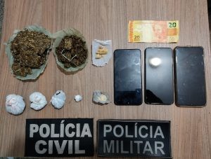 Foi encontrado porções de substância análoga a maconha e crack. Os jovens jogaram o material ilícito no vaso sanitário, porém a droga não desceu e foi recuperada pelos agentes. Todos são conhecidos nos meios policiais por envolvimento em crimes. Um adolescente de 16 anos disse ser o proprietário da droga, afirmou que comprou meio quilo de maconha e uma caixa de crack por seiscentos reais. Afirmou que mora na casa há quatro dias, dividindo o espaço com o homem de 18 anos. Foram apreendidos R$730,00 (setecentos e trinta reais), 06 porções de maconha e 02 porções de crack que pesaram respectivamente 183 e 6,7 gramas, o entorpecente e os jovens foram encaminhados a delegacia.