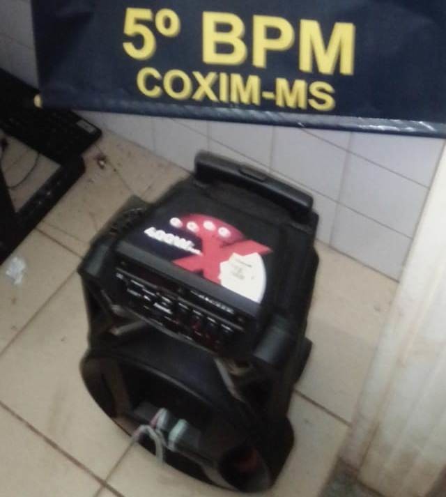 A Polícia Militar na noite do dia (24), prendeu uma mulher de 30 anos e um jovem de 19 anos por perturbação do sossego e apreende aparelhagem de som em Coxim.