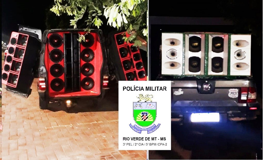 A Polícia Militar apreendeu na noite de sábado (08), dois veículos com aparelhagem de som e prendeu os autores por perturbação do sossego em Rio Verde de MT/MS.