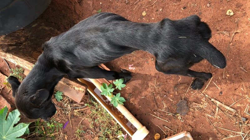 Ainda segundo a polícia, o cão estava bastante magro, debilitado, e mal conseguia se levantar quando foi realizado o exame médico para atestar sua condição de saúde.