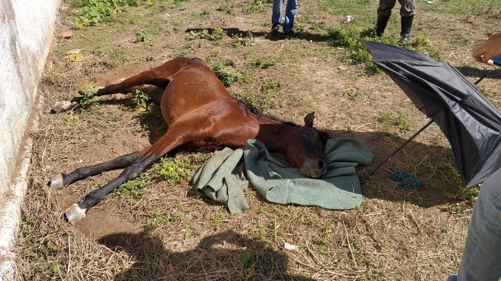 Cavalo estava muito debilitado e morreu logo após atendimento veterinário, diz PMA — Foto: PMA/Divulgação
