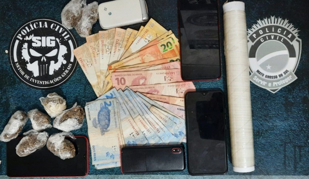 Em buscas pelo imóvel, foram localizados, ainda, seis porções de maconha – 45 gramas – idênticas às encontradas com os usuários –, um papelote de cocaína (1g), seis aparelhos celulares, um caderno contendo anotações da traficância, R$325,00 em espécie e em notas diversas.
