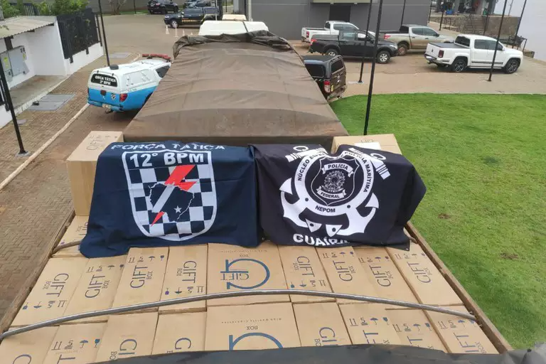 Depois de uma denúncia anônima, a Polícia Federal e a Força Tática do 12⁰ Batalhão da Polícia Militar apreenderam uma carreta com grande carregamento contrabandeado pronto para cruzar a fronteira entre o Brasil e o Paraguai.