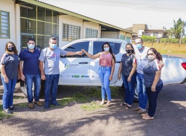 Na manhã desta segunda-feira (22), a responsável pela Casa do Trabalhador de São Gabriel do Oeste, Milani Rezende, juntamente com o secretário de Desenvolvimento Econômico, Roberto Emiliani Júnior e equipe, receberam das mãos do prefeito Jeferson Tomazoni e do vice-prefeito, Valdecir Malacarne, as chaves de um veículo entregue pela Funtrab MS para auxiliar e agilizar o trabalho da Casa.