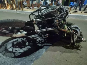 Motocicleta ficou destruída após acidente no Centro de Nioaque. (Foto: Jardim MS News)