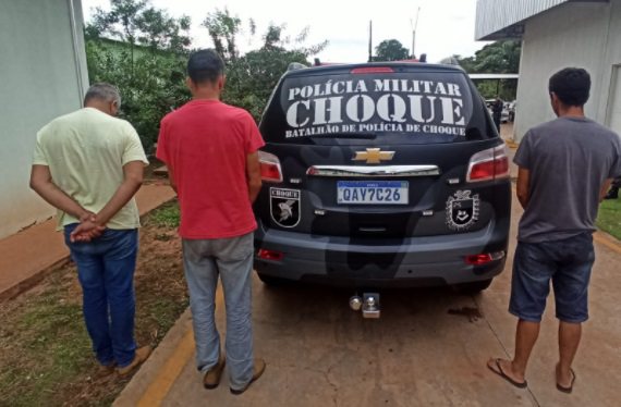 Equipe do Batalhão de Choque da Polícia Militar prendeu três homens neste domingo (19) por tráfico de drogas e associação criminosa, em uma residência no Jardim Centro-Oeste, em Campo Grande. O local foi indicado como sendo um ponto de preparação de veículos utilizados no transporte de drogas e os materiais apreendidos totalizaram em R$ 1.050.000,00 de prejuízo ao crime.