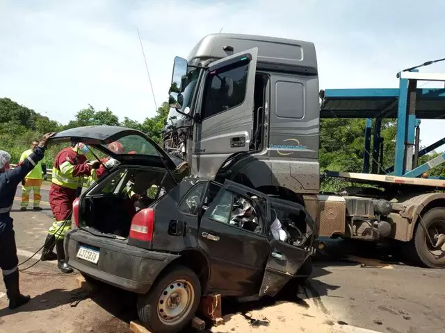 Horas depois do mesmo dia, na estrada entre Rio Verde e Coxim, colisão frontal entre VW Gol e caminhão-cegonha matou quatro pessoas da mesma família, casal e duas crianças, no Km 690 da BR-163, entre Rio Verde de Mato Grosso e Coxim.