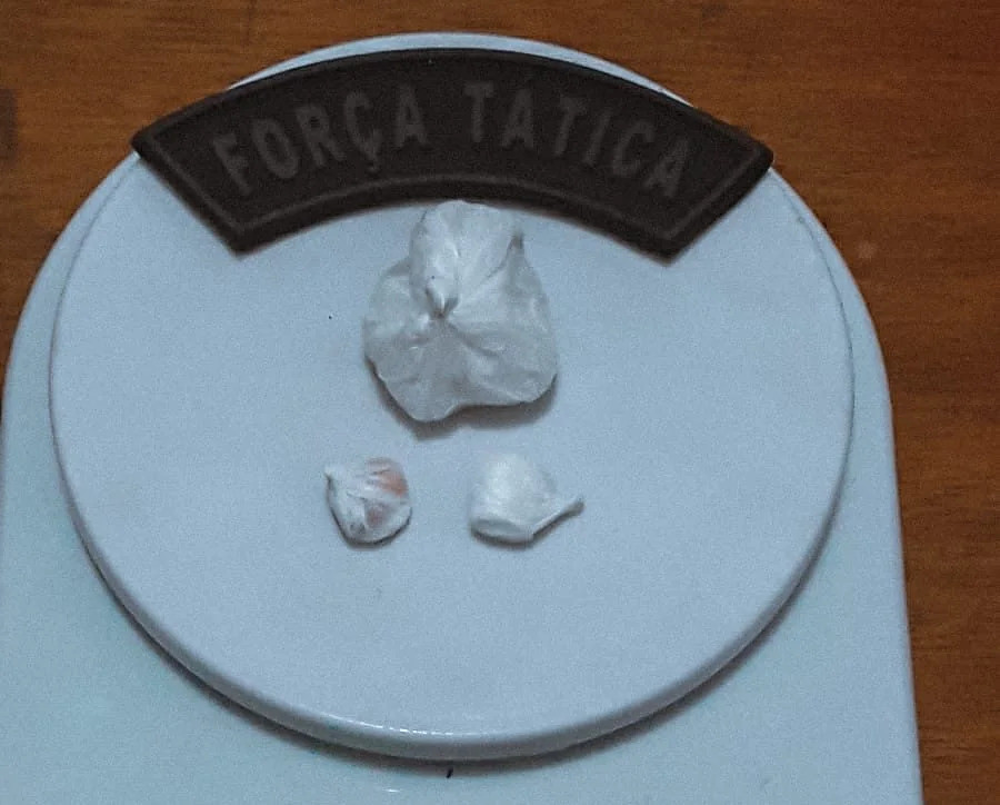 A equipe de Força Tática, por volta das 18h, realizava rondas pela rua Noginel Moura Pegado quando avistou a mulher em uma motocicleta parada de frente a uma residência. A cidadã apresentou muito nervosismo com a presença policial e foi submetida a uma abordagem. Os policiais encontraram com ela duas trouxinhas contendo cocaína e ela acabou confessando que estava, a mando de seu esposo, ali para entregar a droga para o morador daquela casa e receberia a quantia de R$ 150 reais.