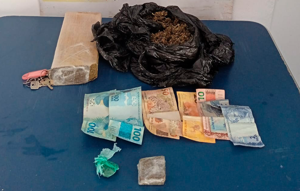 Nesta tarde (10), por volta das 13h, a equipe em destaque realizava o policiamento ostensivo e preventivo pela área central da cidade quando se deparou com dois jovens em uma motocicleta CG 150 de cor preta, que ao perceberem a presença policial, demonstraram certo nervosismo. O condutor da motocicleta, um adolescente de 17 anos e o passageiro, um jovem de 23 anos foram abordados e durante a busca pessoal foi encontrado com o adolescente uma porção de maconha, pesando aproximadamente 04 gramas e com o jovem de 23 anos uma porção de maconha, pesando aproximadamente 28 gramas. Questionado sobre o produto, o jovem de 23 anos disse que vende a droga na modalidade de “Disque droga”, que consiste entrega em domicílio ou em locais predeterminados e que em sua residência havia uma quantidade maior de entorpecente.