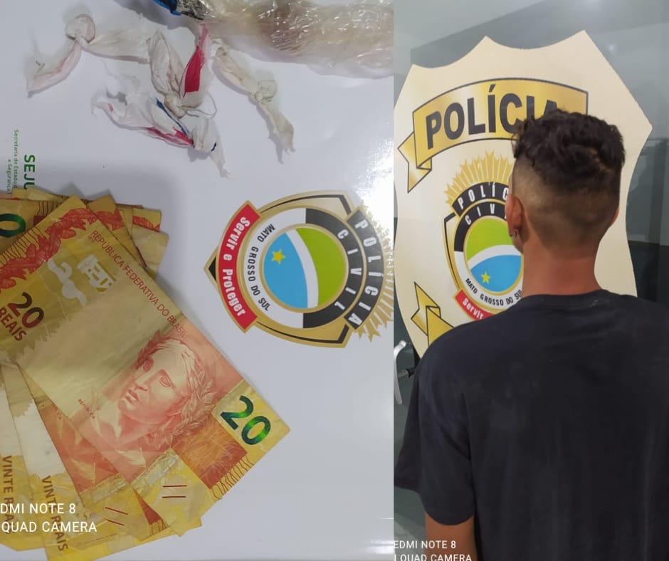 Na tarde desta quinta feira (10) a Polícia Civil prendeu em flagrante o jovem B.H.O de 19 anos na entrada da cidade de Bandeirantes , quando trazia consigo várias porções de substancia análoga, a pasta base de cocaína embaladas para venda. O meliante já vinha sendo investigado por tráfico de drogas no local conhecido como “Castelo de Madeira” e vinha sendo monitorado pelos Investigadores do S.I.G, que aguardaram o melhor momento para abordagem. Na busca pessoal, foi localizado drogas e R$ 200.00 em dinheiro, provenientes da comercialização de entorpecentes . O autor foi conduzido a Delegacia de Polícia onde foi lavrado o Auto de prisão em flagrante. O Delegado Jarley Inácio de Souza afirma que as investigações continuam em andamento e em breve outros envolvidos serão identificados e presos.