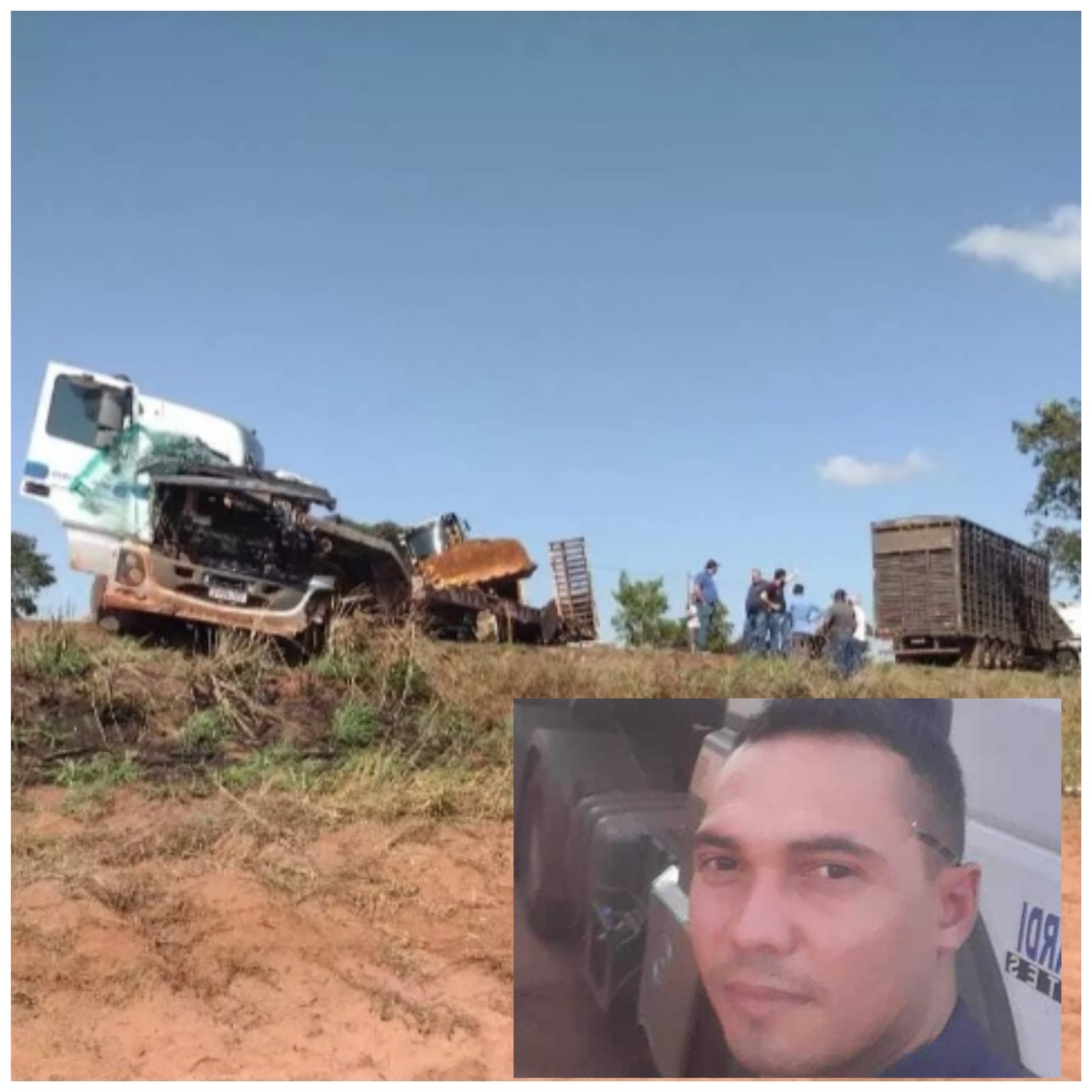 Foi identificado como José Cosme, 34 anos, o rapaz que morreu, o corpo dele também está preso às ferragens. A cabine onde ele estava ficou completamente destruída após a colisão. De acordo com o site Fatos Regionais, José dirigia uma carreta da empresa GreenPlac.