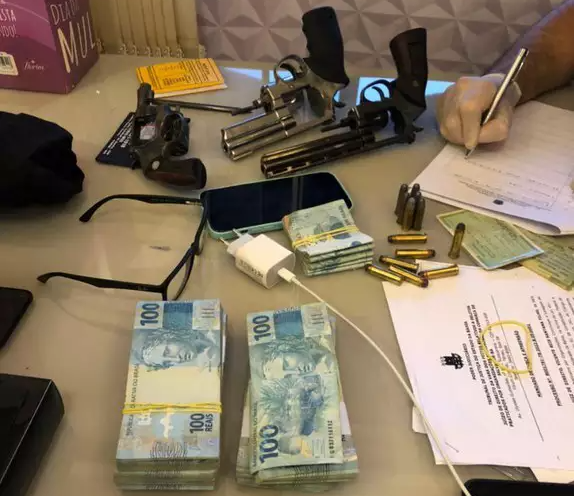 Em Campo Grande, dois irmãos, de 29 e 40 anos, foram presos. Apenas um deles era alvo da PF, o de 40 anos. Ao cumprir o mandado, a polícia acabou encontrando cinco armas de fogo na residência do Bairro Santo Amaro. O rapaz de 29 anos foi preso em flagrante. Além disso, foram encontrados quase R$ 50 mil em espécie, sem procedência comprovada.