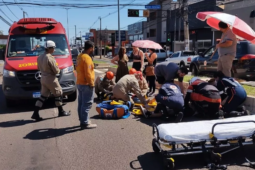 O acidente ocorreu entre as ruas Spipe Calarge e Santana. Segundo o Corpo de Bombeiros, a pedestre foi socorrida com o quadril quebrado e encaminhada para a Santa Casa. O condutor da motocicleta sofreu ferimentos leves.