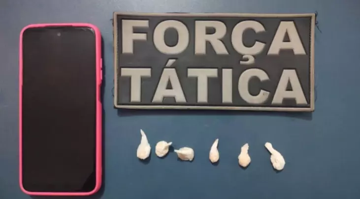 Segundo a polícia, quando o condutor da moto soltou uma embalagem ao chão e parou alguns metros do local. Foi realizada a busca pessoal no autor de 25 anos e na autora de 31 anos, onde nada de ilícito foi localizado, já em busca perimetral no local, foi encontrada a embalagem plástica contendo cinco porções de pedra bruta de  e uma de cocaína.