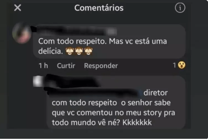 Após isso, o diretor passou a enviar mensagens para ela. Em uma delas teria feito o seguinte comentário: “Com todo respeito, você está uma delícia”. Em outro comentário ele teria dito: “Você mexe com a minha imaginação”.