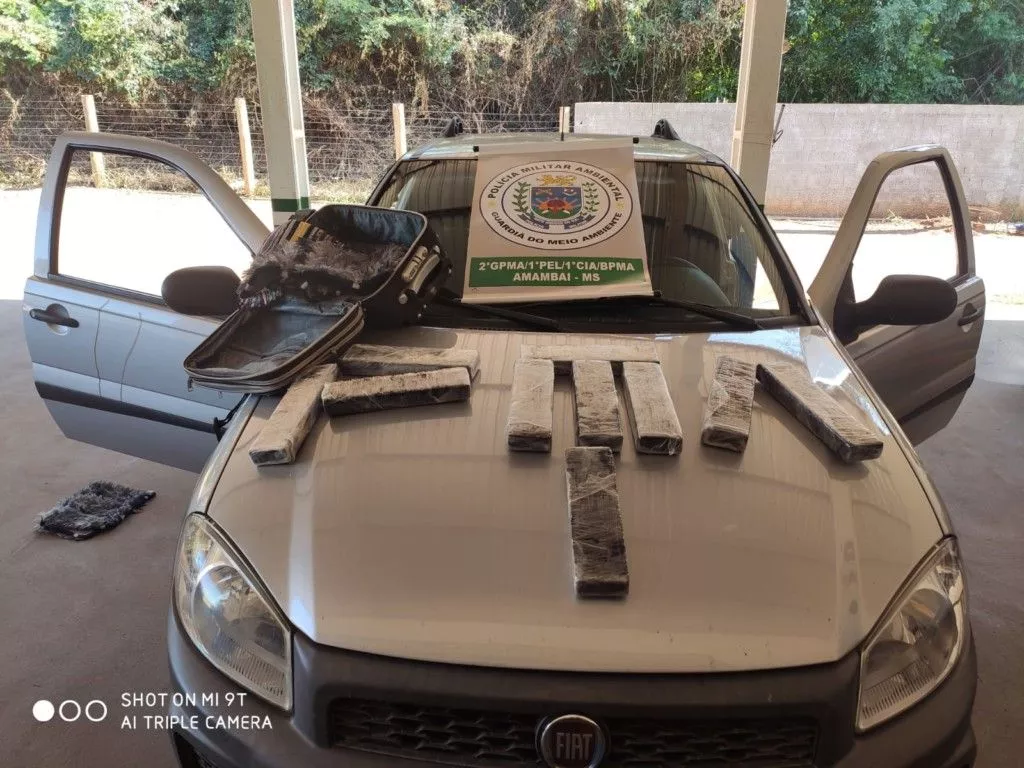 Hoje (25) no início da tarde, a equipe da Polícia Militar Ambiental realizava fiscalização ambiental no município, na rodovia MS 156 e abordaram um veículo Fiat Strada conduzido por um adolescente de 17 anos. Os Policiais enquanto analisavam o documento do condutor perceberam odor de maconha no veículo e, ao abrir uma mala de cor preta, encontraram 10 tabletes de maconha, que pesaram 8,5 kg.
