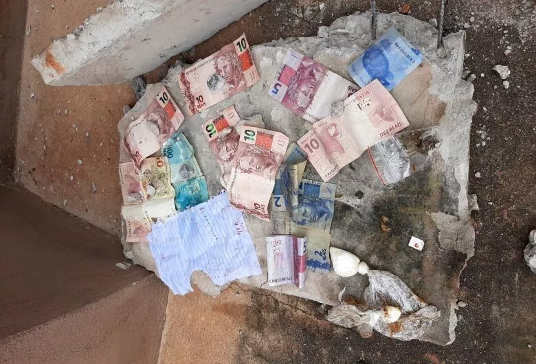Foram apreendidas porções de maconha e uma porção de cocaína, além de certa quantia em dinheiro, sem procedência lícita.