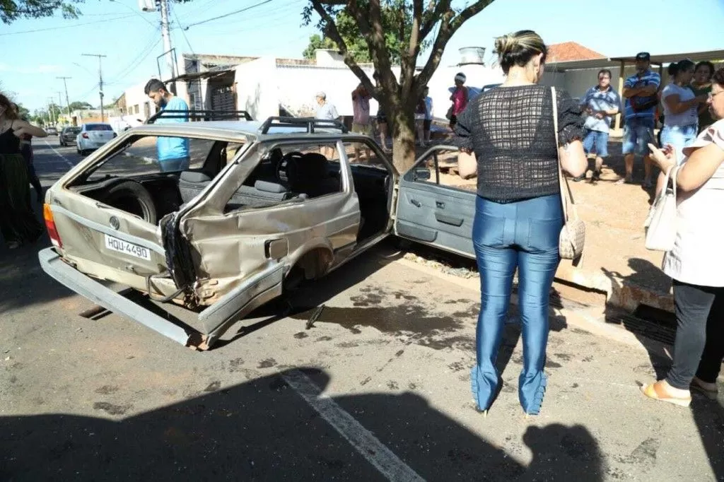 Acidente no bairro Santo Eugênio, sudeste de Campo Grande, deixou mãe e filho feridos, mas sem gravidade. O carro em que Aline Ricaldi, de 27 anos, estava com o filho de sete anos era uma Parati, que acabou sendo atingida por Palio, conduzido por Daiane da Silva, de 34 anos.